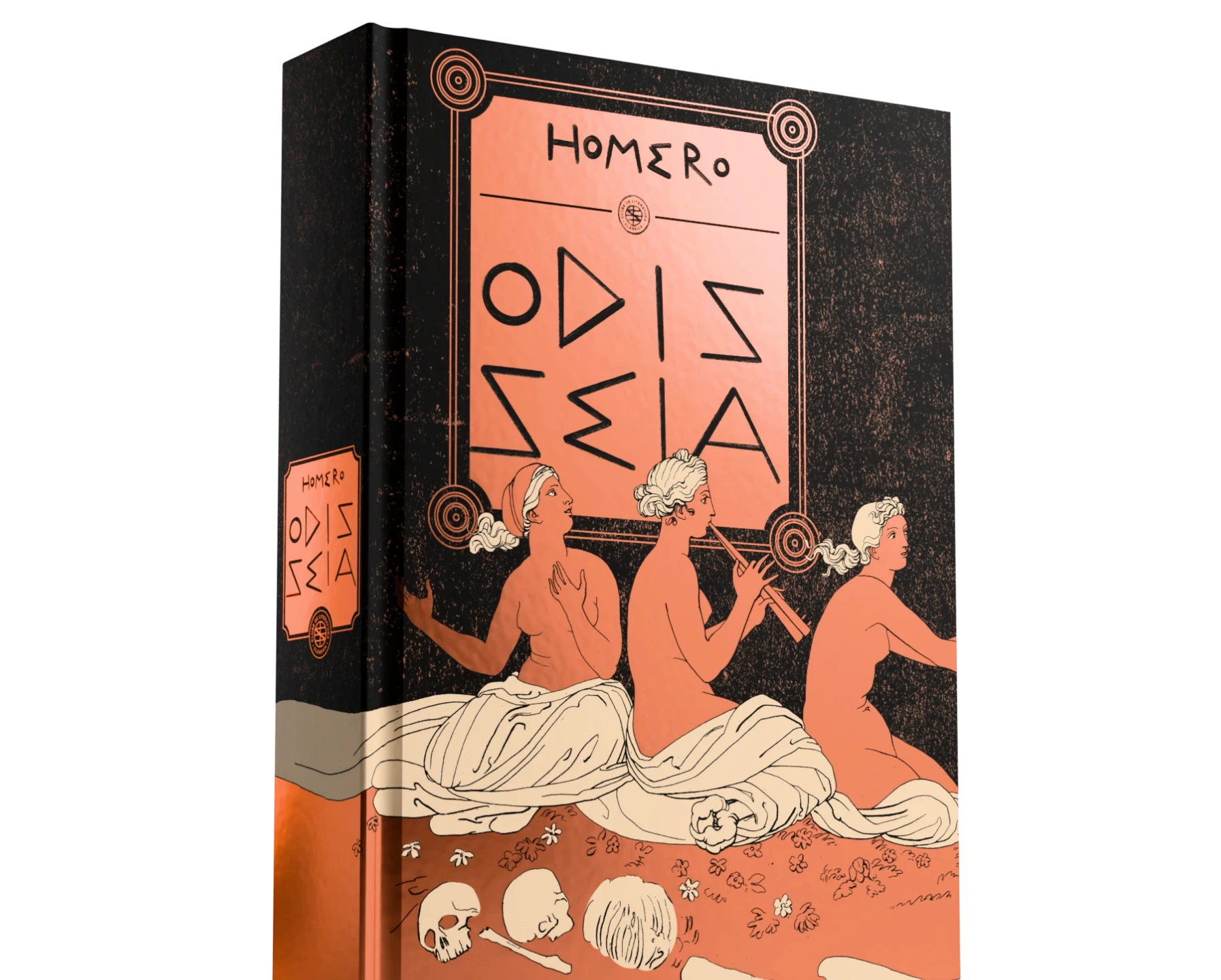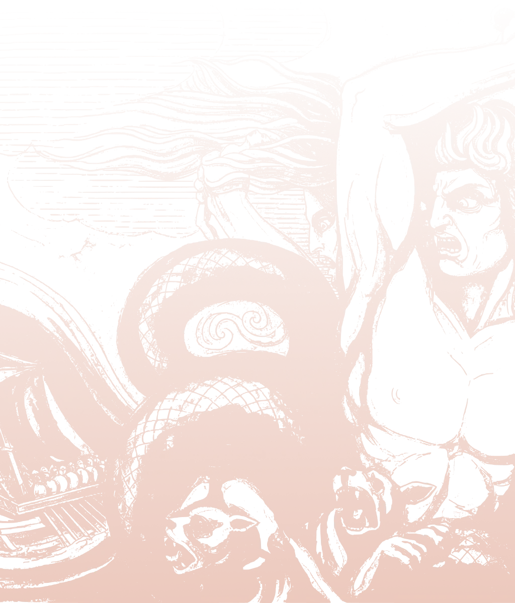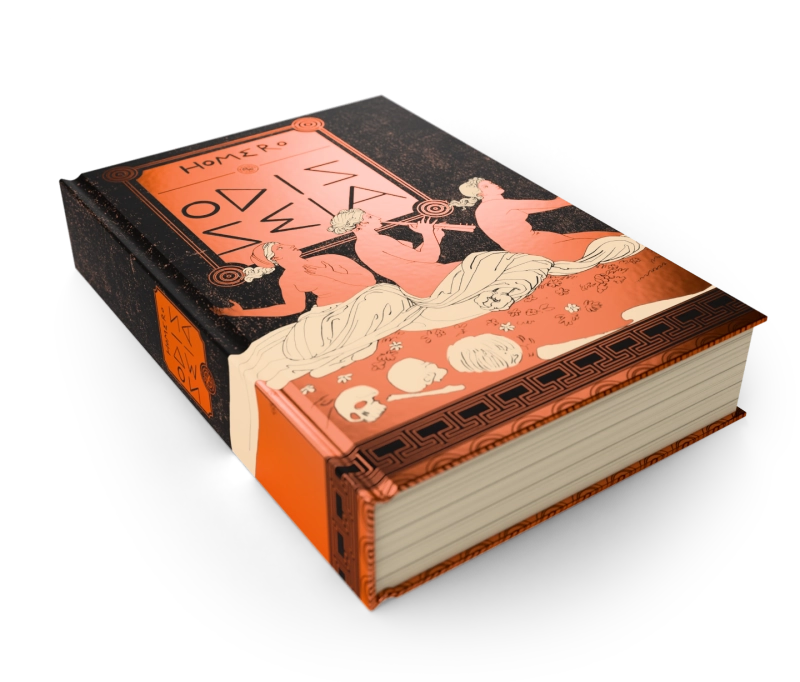 Projeto gráfico inspirado nas gravuras que John Flaxman (1755–1826) – renomado desenhista do neoclassicismo inglês – produziu sobre a jornada de Odisseu.