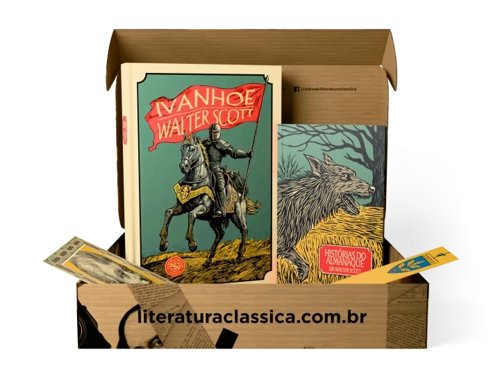 Além do clássico e do livreto, você vai receber um retrato de Walter Scott e um marca-páginas temático.