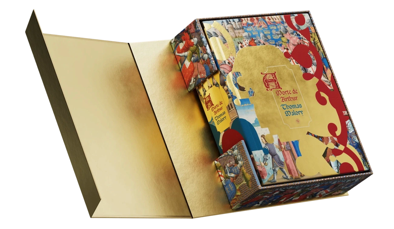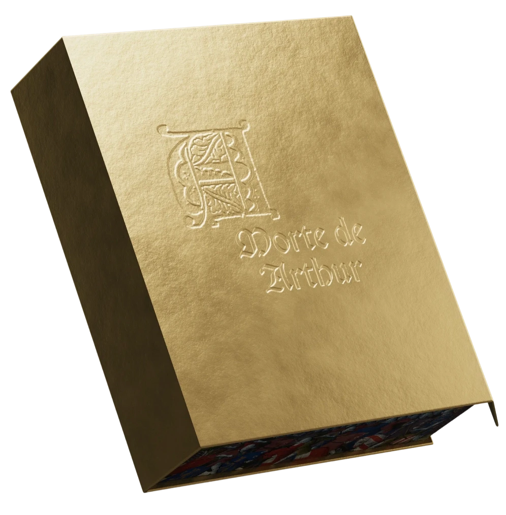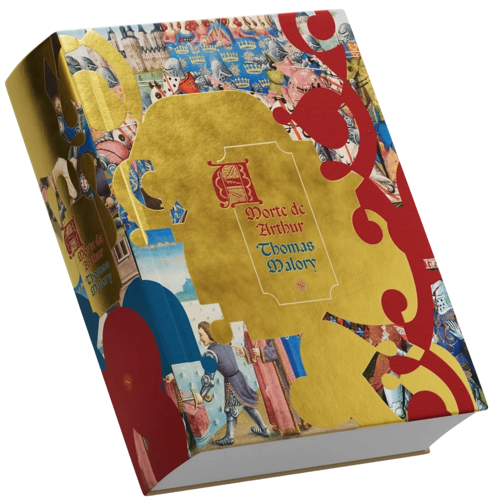 A edição definitiva do Clube de Literatura Clássica carrega todo esse peso histórico, com um projeto gráfico que une visualmente a edição icônica de William Caxton, publicada em 1485, com o manuscrito de Winchester, que passou séculos perdido, até ser descoberto na Inglaterra, em 1934.